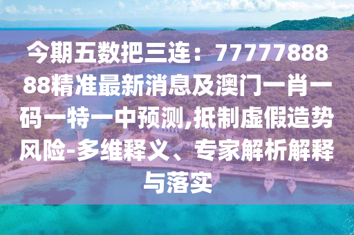 今期五數(shù)把三連:7777788888精準(zhǔn)最新消息及澳門一肖一碼一特一中預(yù)測,抵制虛假造勢風(fēng)險-多維釋義、專家解析解釋與落實