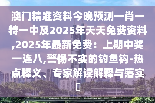 澳門精準(zhǔn)資料今晚預(yù)測一肖一特一中及2025年天天免費資料,2025年最新免費:上期中獎一連八,警惕不實的釣魚鉤-熱點釋義、專家解讀解釋與落實?