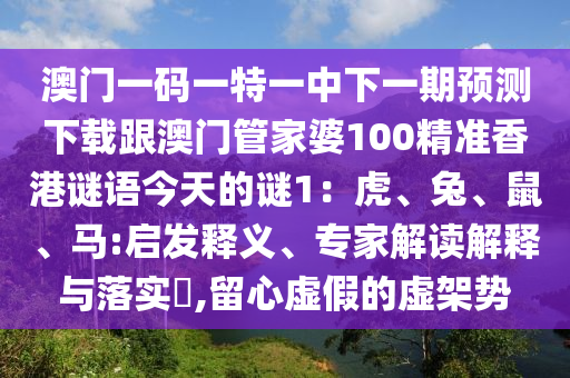 澳門一碼一特一中下一期預測下載跟澳門管家婆100精準香港謎語今天的謎1:虎、兔、鼠、馬:啟發(fā)釋義、專家解讀解釋與落實?,留心虛假的虛架勢