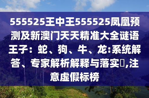 555525王中王555525鳳凰預(yù)測(cè)及新澳門天天精準(zhǔn)大全謎語王子:蛇、狗、牛、龍:系統(tǒng)解答、專家解析解釋與落實(shí)?,注意虛假標(biāo)榜