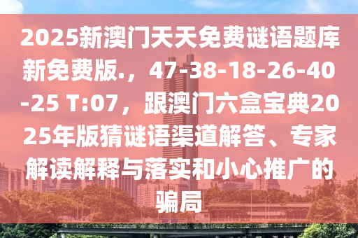 2025新澳門(mén)天天免費(fèi)謎語(yǔ)題庫(kù)新免費(fèi)版.,47-38-18-26-40-25 T:07,跟澳門(mén)六盒寶典2025年版猜謎語(yǔ)渠道解答、專家解讀解釋與落實(shí)和小心推廣的騙局
