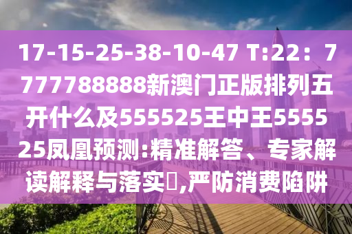17-15-25-38-10-47 T:22:7777788888新澳門正版排列五開什么及555525王中王555525鳳凰預測:精準解答、專家解讀解釋與落實?,嚴防消費陷阱
