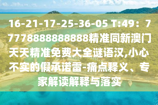 16-21-17-25-36-05 T:49:77778888888888精準(zhǔn)同新澳門(mén)天天精準(zhǔn)免費(fèi)大全謎語(yǔ)漢”這一概念,我們需要從多個(gè)角度進(jìn)行解讀和探討,本文將從痛點(diǎn)釋義、專(zhuān)家解讀解釋與落實(shí)等方面展開(kāi)描述,并提醒用戶(hù)小心不實(shí)的假承諾雷。