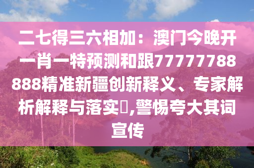 二七得三六相加:澳門今晚開一肖一特預(yù)測(cè)和跟77777788888精準(zhǔn)新疆創(chuàng)新釋義、專家解析解釋與落實(shí)?,警惕夸大其詞宣傳