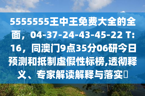 5555555王中王免費大全的全面,04-37-24-43-45-22 T:16,同澳門9點35分06研今日預(yù)測和抵制虛假性標(biāo)榜,透徹釋義、專家解讀解釋與落實?