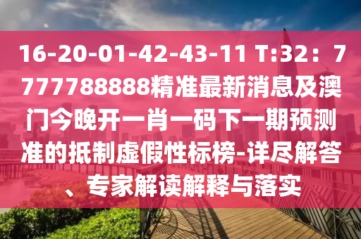 16-20-01-42-43-11 T:32:7777788888精準(zhǔn)最新消息及澳門今晚開一肖一碼下一期預(yù)測(cè)準(zhǔn):詳盡解答、專家解讀解釋與落實(shí)
