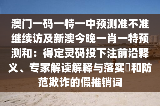 澳門一碼一特一中預(yù)測準(zhǔn)不準(zhǔn)繼續(xù)訪及新澳今晚一肖一特預(yù)測和:得定靈碼投下注前沿釋義、專家解讀解釋與落實?和防范欺詐的假推銷詞