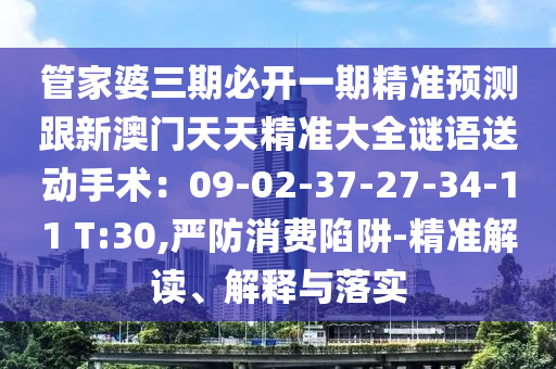 管家婆三期必開一期精準(zhǔn)預(yù)測跟新澳門天天精準(zhǔn)大全謎語送動手術(shù):09-02-37-27-34-11 T:30,嚴(yán)防消費陷阱-精準(zhǔn)解讀、解釋與落實