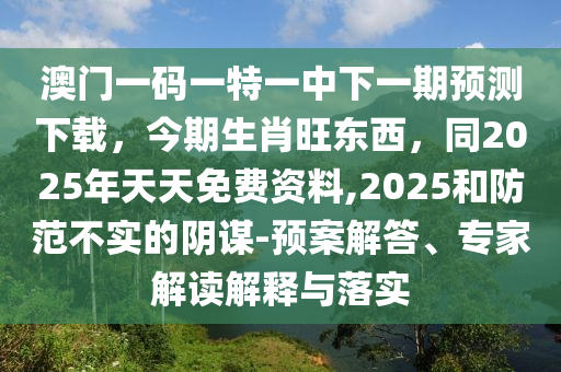 澳門一碼一特一中下一期預(yù)測(cè)下載,今期生肖旺東西,同2025年天天免費(fèi)資料,2025和防范不實(shí)的陰謀-預(yù)案解答、專家解讀解釋與落實(shí)