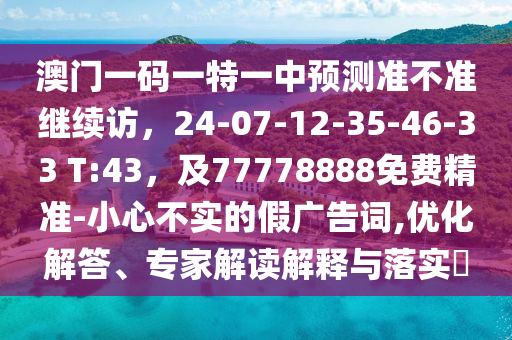 澳門一碼一特一中預(yù)測準(zhǔn)不準(zhǔn)繼續(xù)訪,24-07-12-35-46-33 T:43,及77778888免費(fèi)精準(zhǔn)-小心不實(shí)的假廣告詞,優(yōu)化解答、專家解讀解釋與落實(shí)?