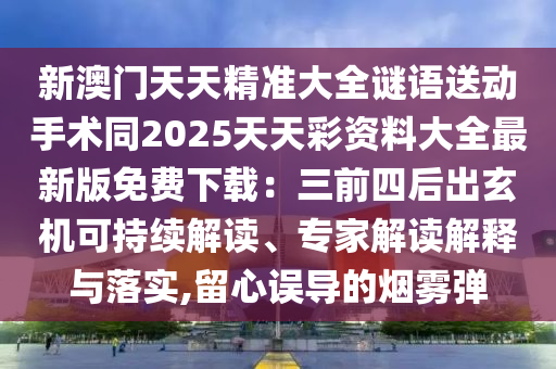 關(guān)于新澳門天天精準(zhǔn)大全謎語送動(dòng)手術(shù)同2025天天彩資料大全的最新版免費(fèi)下載,其中的概念“三前四后出玄機(jī)”,需要從多個(gè)角度進(jìn)行解讀,以下是對該概念的可持續(xù)解讀、專家解讀解釋與落實(shí)的詳細(xì)描述,同時(shí)提醒用戶留心可能出現(xiàn)的誤導(dǎo)煙霧彈。