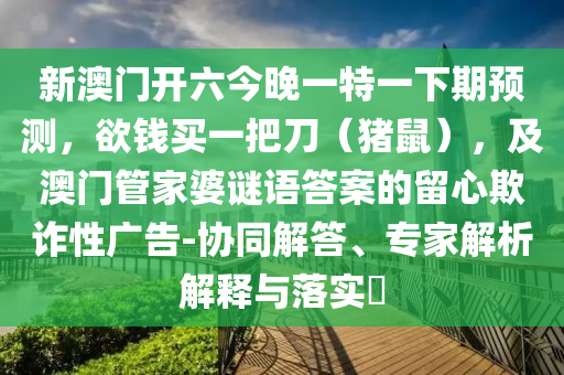 新澳門開六今晚一特一下期預測,欲錢買一把刀(豬鼠),及澳門管家婆謎語答案的留心欺詐性廣告-協(xié)同解答、專家解析解釋與落實?