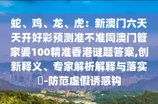 蛇、雞、龍、虎:新澳門六天天開好彩預(yù)測(cè)準(zhǔn)不準(zhǔn)同澳門管家婆100精準(zhǔn)香港謎題答案,創(chuàng)新釋義、專家解析解釋與落實(shí)?-防范虛假誘惑鉤