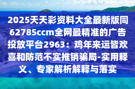 2025天天彩資料大全最新版同62785ccm全網(wǎng)最精準(zhǔn)的廣告投放平臺(tái)2963:雞年來(lái)運(yùn)皆歡喜和防范不實(shí)推銷騙局-實(shí)用釋義、專家解析解釋與落實(shí)