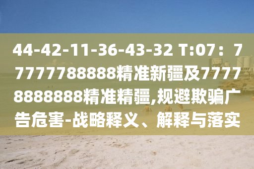 關(guān)于關(guān)鍵詞“44-42-11-36-43-32 T:07:77777788888精準(zhǔn)新疆及77778888888精準(zhǔn)精疆”的戰(zhàn)略釋義、解釋與落實(shí),以及規(guī)避欺騙廣告危害的全面解析,本文將分為以下幾個(gè)部分進(jìn)行闡述。
