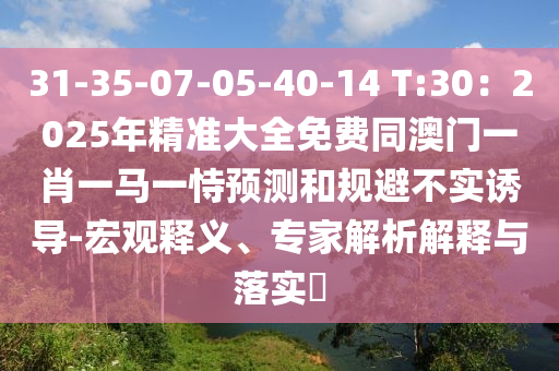 31-35-07-05-40-14 T:30:2025年精準大全免費同澳門一肖一馬一恃預測和規(guī)避不實誘導-宏觀釋義、專家解析解釋與落實?