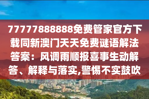 全面釋義、專家解讀與落實(shí)及警惕虛假宣傳關(guān)于“77777888888免費(fèi)管家官方下載同新澳門天天免費(fèi)謎語解法答案:風(fēng)調(diào)雨順報(bào)喜事”的解析