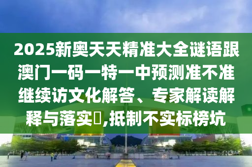 2025新奧天天精準大全謎語”與“澳門一碼一特一中預(yù)測準不準繼續(xù)訪”等相關(guān)概念的文化解答、專家解讀與落實,在此進行詳細的闡述和解析。