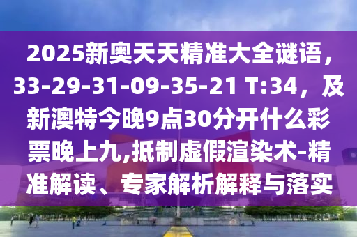 2025新奧天天精準(zhǔn)大全謎語,33-29-31-09-35-21 T:34,及新澳特今晚9點30分開什么彩票晚上九,抵制虛假渲染術(shù)-精準(zhǔn)解讀、專家解析解釋與落實