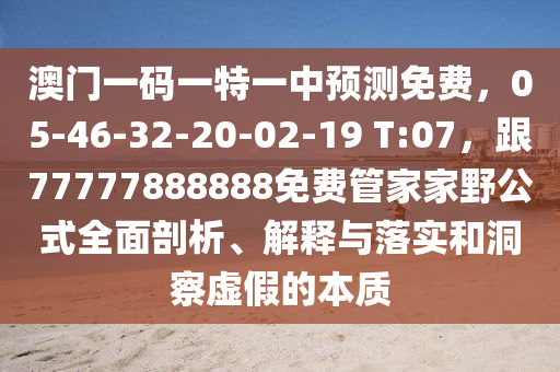 澳門一碼一特一中預(yù)測免費(fèi),05-46-32-20-02-19 T:07,跟77777888888免費(fèi)管家家野公式全面剖析、解釋與落實(shí)和洞察虛假的本質(zhì)