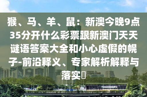 猴、馬、羊、鼠:新澳今晚9點35分開什么彩票跟新澳門天天謎語答案大全和小心虛假的幌子-前沿釋義、專家解析解釋與落實?