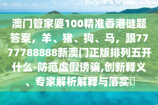 澳門管家婆100精準(zhǔn)香港謎題答案,羊、豬、狗、馬,跟7777788888新澳門正版排列五開什么-防范虛假誘騙,創(chuàng)新釋義、專家解析解釋與落實(shí)?