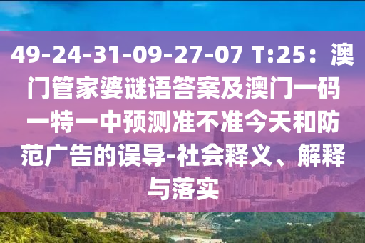 49-24-31-09-27-07 T:25:澳門管家婆謎語答案及澳門一碼一特一中預(yù)測(cè)準(zhǔn)不準(zhǔn)今天的社會(huì)釋義、解釋與落實(shí)