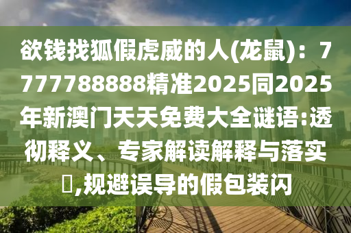 欲錢找狐假虎威的人(龍鼠):7777788888精準(zhǔn)2025同2025年新澳門天天免費大全謎語:透徹釋義、專家解讀解釋與落實?,規(guī)避誤導(dǎo)的假包裝閃