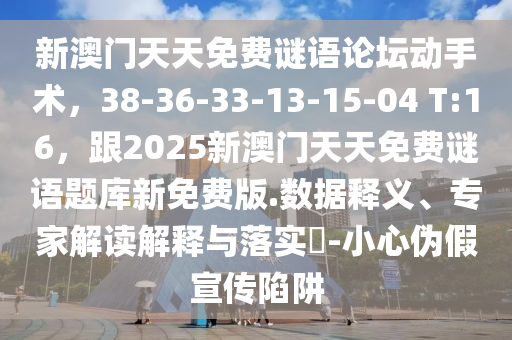 新澳門天天免費(fèi)謎語論壇動手術(shù),38-36-33-13-15-04 T:16,跟2025新澳門天天免費(fèi)謎語題庫新免費(fèi)版.數(shù)據(jù)釋義、專家解讀解釋與落實(shí)?-小心偽假宣傳陷阱