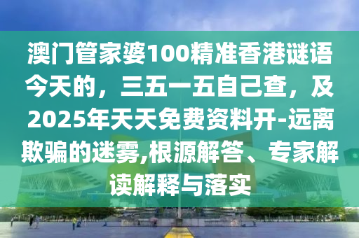 澳門管家婆100精準香港謎語今天的,三五一五自己查,及2025年天天免費資料開-遠離欺騙的迷霧,根源解答、專家解讀解釋與落實