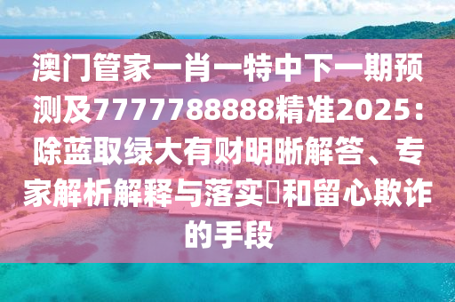 關于澳門管家一肖一特中下一期預測及7777788888精準2025:除藍取綠大有財和留心欺詐的手段的明晰解答、專家解析解釋與落實