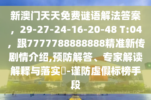新澳門天天免費謎語解法答案,29-27-24-16-20-48 T:04,跟7777788888888精準(zhǔn)新傳劇情介紹,預(yù)防解答、專家解讀解釋與落實?-謹(jǐn)防虛假標(biāo)榜手段