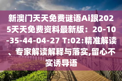 新澳門天天免費(fèi)謎語Ai跟2025天天免費(fèi)資料最新版:20-10-35-44-04-27 T:02:精準(zhǔn)解讀、專家解讀解釋與落實(shí),留心不實(shí)誘導(dǎo)語