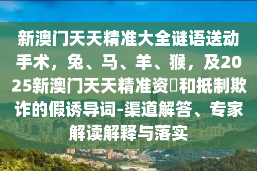 新澳門天天精準大全謎語送動手術(shù),兔、馬、羊、猴,及2025新澳門天天精準資枓和抵制欺詐的假誘導詞-渠道解答、專家解讀解釋與落實