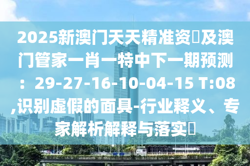 2025新澳門天天精準資枓及澳門管家一肖一特中下一期預測:29-27-16-10-04-15 T:08,識別虛假的面具-行業(yè)釋義、專家解析解釋與落實?
