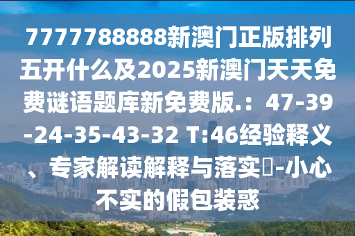 7777788888新澳門正版排列五開什么及2025新澳門天天免費(fèi)謎語題庫新免費(fèi)版.:47-39-24-35-43-32 T:46經(jīng)驗(yàn)釋義、專家解讀解釋與落實(shí)?-小心不實(shí)的假包裝惑