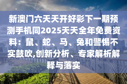 新澳門六天天開好彩下一期預(yù)測(cè)手機(jī)同2025天天全年免費(fèi)資料:鼠、蛇、馬、兔和警惕不實(shí)鼓吹,創(chuàng)新分析、專家解析解釋與落實(shí)
