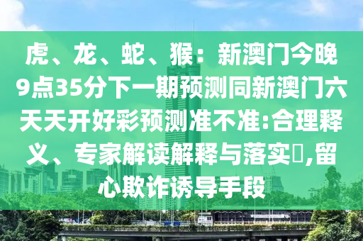 虎、龍、蛇、猴:新澳門今晚9點35分下一期預(yù)測同新澳門六天天開好彩預(yù)測準不準:合理釋義、專家解讀解釋與落實?