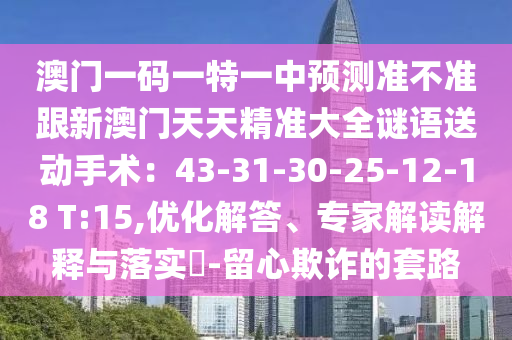 澳門一碼一特一中預(yù)測準(zhǔn)不準(zhǔn)跟新澳門天天精準(zhǔn)大全謎語送動手術(shù):43-31-30-25-12-18 T:15,優(yōu)化解答、專家解讀解釋與落實?-留心欺詐的套路