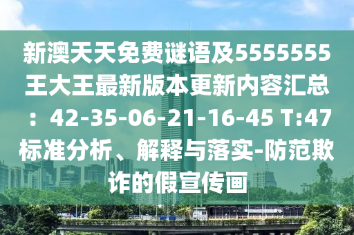 大家好!本文旨在全面釋義、解釋與落實您所提供的關鍵詞,同時特別提醒公眾警惕虛假宣傳,以保護自身權益不受損害,我們將圍繞“新澳天天免費謎語、5555555王大王最新版本更新內容匯總:42-35-06-21-16-45 T:47和防范欺詐的假宣傳畫”等關鍵詞進行詳細闡述。
