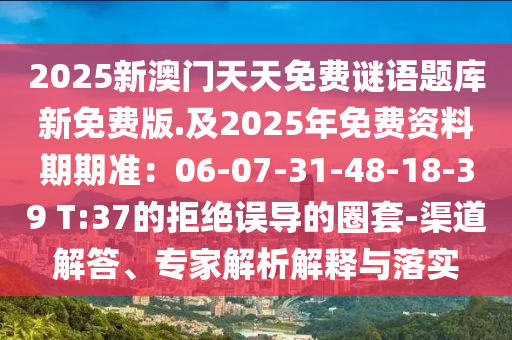 2025新澳門天天免費謎語題庫新免費版.及2025年免費資料期期準:06-07-31-48-18-39 T:37的拒絕誤導的圈套-渠道解答、專家解析解釋與落實