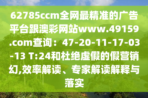 62785ccm全網(wǎng)最精準的廣告平臺跟澳彩網(wǎng)站www.49159.соm查詢:47-20-11-17-03-13 T:24和杜絕虛假的假營銷幻,效率解讀、專家解讀解釋與落實