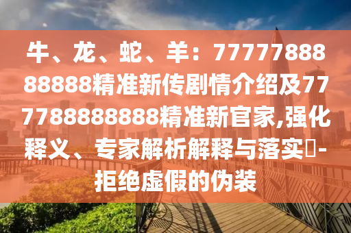 牛、龍、蛇、羊:777778888888精準新傳劇情介紹及拒絕虛假的偽裝——強化釋義、專家解析解釋與落實