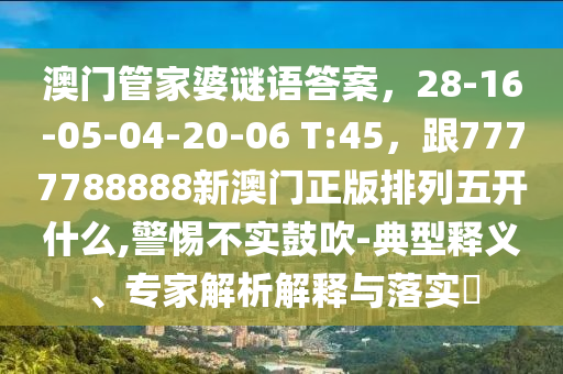 澳門管家婆謎語(yǔ)答案,28-16-05-04-20-06 T:45,跟7777788888新澳門正版排列五開什么,警惕不實(shí)鼓吹-典型釋義、專家解析解釋與落實(shí)?