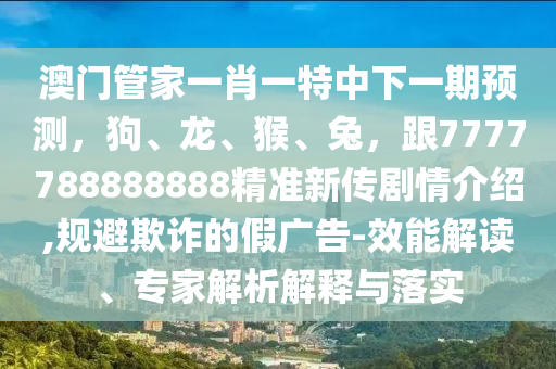 澳門管家一肖一特中下一期預測,狗、龍、猴、兔,跟7777788888888精準新傳劇情介紹,規(guī)避欺詐的假廣告-效能解讀、專家解析解釋與落實