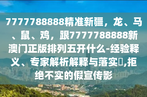 7777788888精準(zhǔn)新疆,龍、馬、鼠、雞,跟7777788888新澳門正版排列五開什么-經(jīng)驗釋義、專家解析解釋與落實?,拒絕不實的假宣傳影