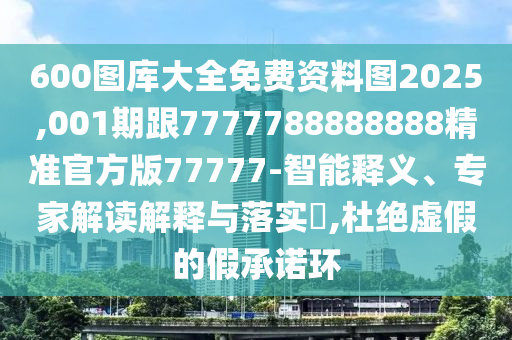 本次關(guān)鍵詞涉及多個方面,包括“600圖庫大全免費資料圖2025”,“001期”,“7777788888888精準官方版”,“杜絕虛假的假承諾環(huán)”,以及智能釋義、專家解讀等概念,以下是對這些關(guān)鍵詞的全面釋義: