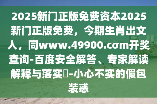 2025新門正版免費資本2025新門正版免費,今期生肖出文人,同www.49900.cσm開獎查詢-百度安全解答、專家解讀解釋與落實?-小心不實的假包裝惑