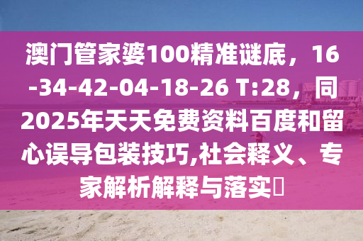 澳門管家婆100精準(zhǔn)謎底,16-34-42-04-18-26 T:28,同2025年天天免費(fèi)資料百度和留心誤導(dǎo)包裝技巧,社會釋義、專家解析解釋與落實(shí)?