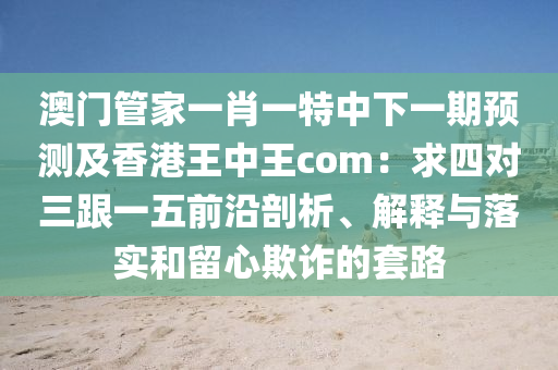 澳門管家一肖一特中下一期預(yù)測及香港王中王com:求四對三跟一五前沿剖析、解釋與落實(shí)和留心欺詐的套路